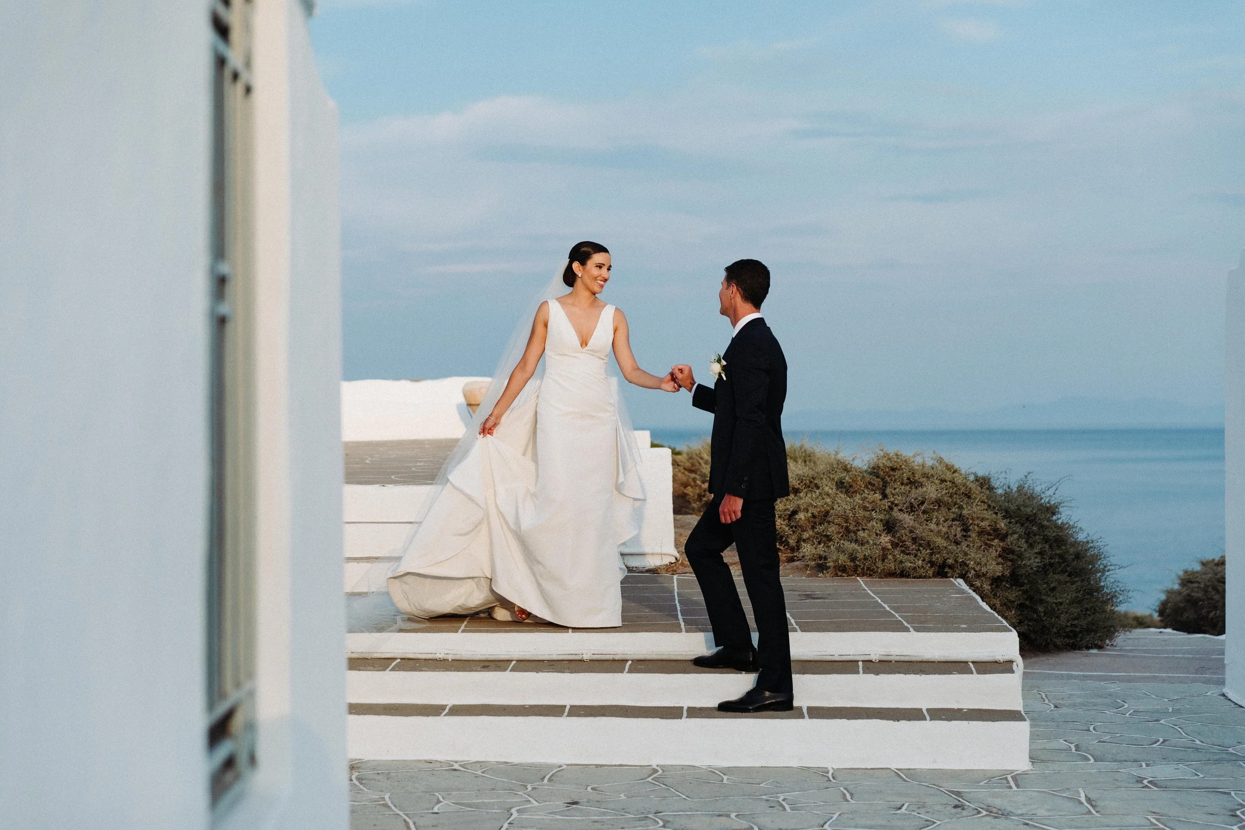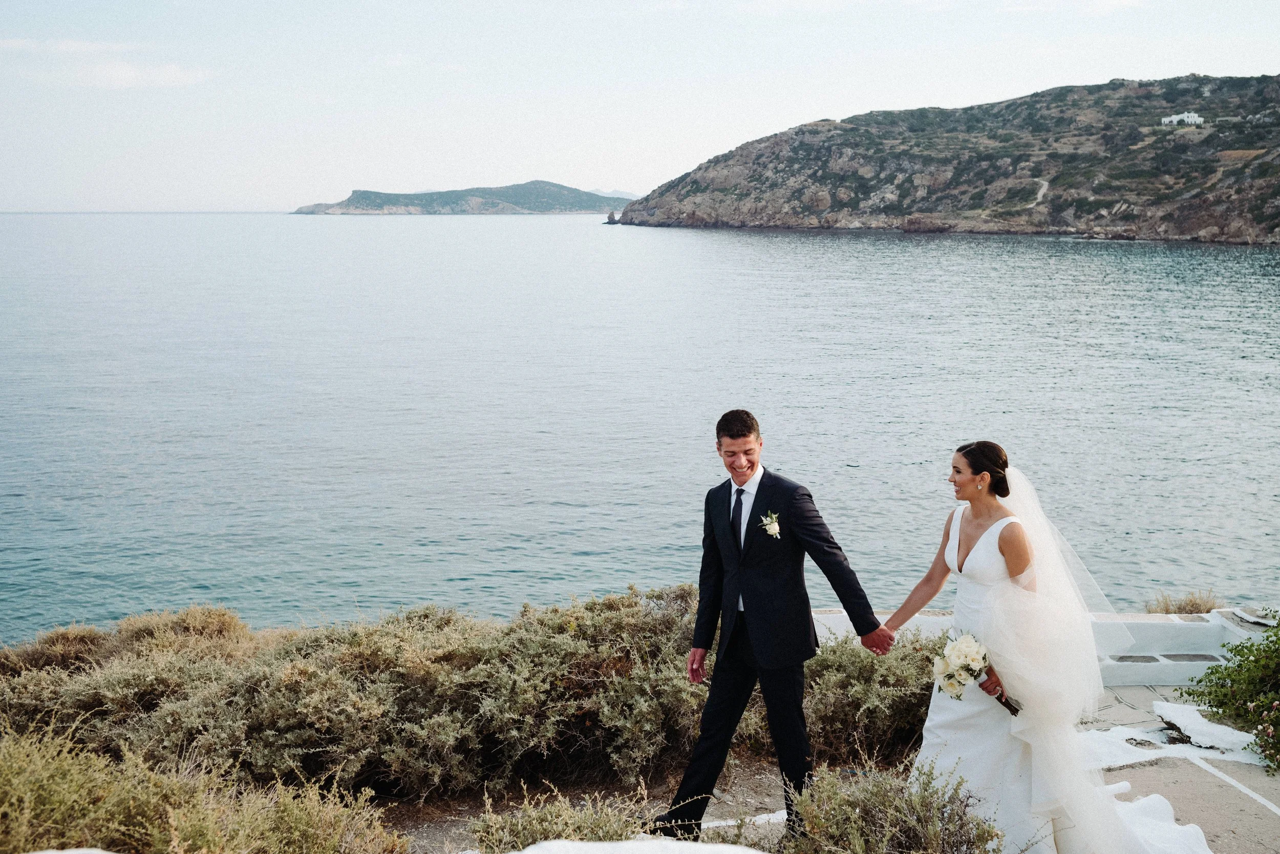 When we met with Bianca & Greg to chat about their upcoming wedding in Greece, we were so ready for the adventure. Not only did we immediately fall in love with their family, but the idea of returning to the Greek islands to capture another wedding was just a dream come true. Generally speaking, when you plan a visit to Greece, you envision the deep blue seas and towns lined with tiny white homes and cobalt blue accents everywhere. I can tell you, although it may be impossible to believe, the idea of the Greek islands is nowhere near as magical as actually waking up there. It’s like stepping on another planet. An abundance of natural beauty, delicious fresh food and the people are not to be forgotten. It's the perfect place to celebrate one of the most beautiful moments of your life. This particular wedding made the experience even more special, if you can believe it. Although we have had the honor of documenting really incredible love stories in so many gorgeous destinations, they are usually local couples that we follow to these beautiful locations. This wedding however allowed us to take a glimpse into old Greek traditions. The groom, Grigoris, is a native of Greece and so it was not only a celebration of love and marriage between him and Bianca, but also a celebration of unity between two unique cultures and families.