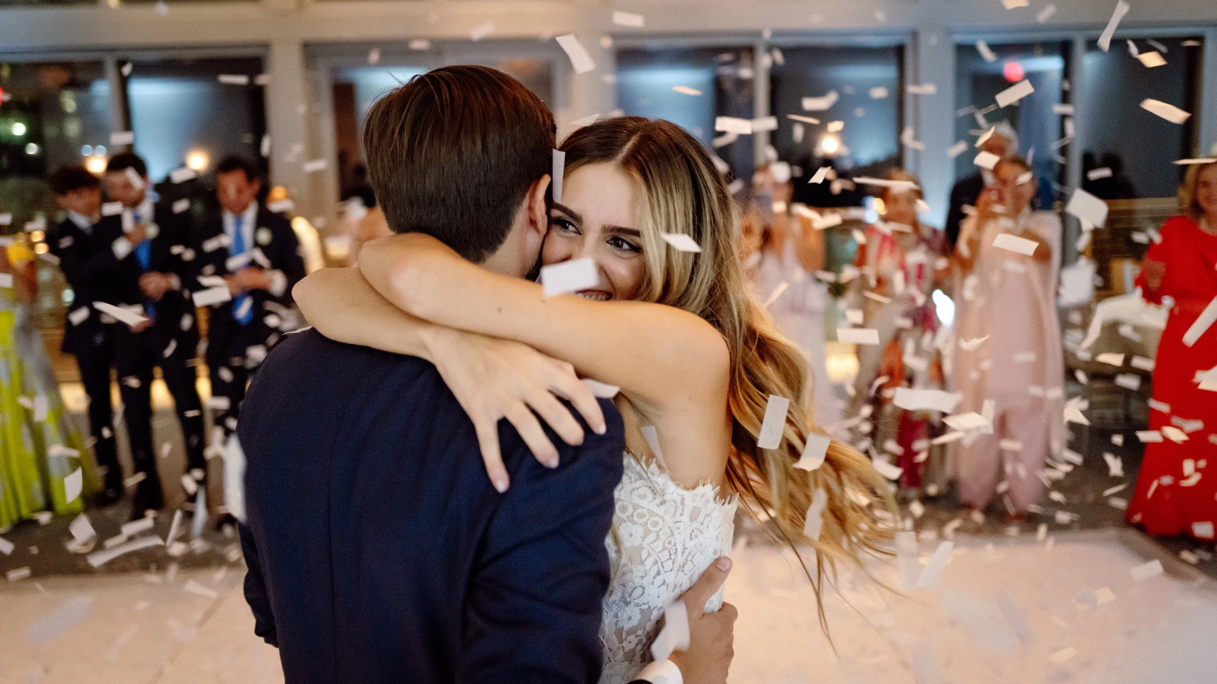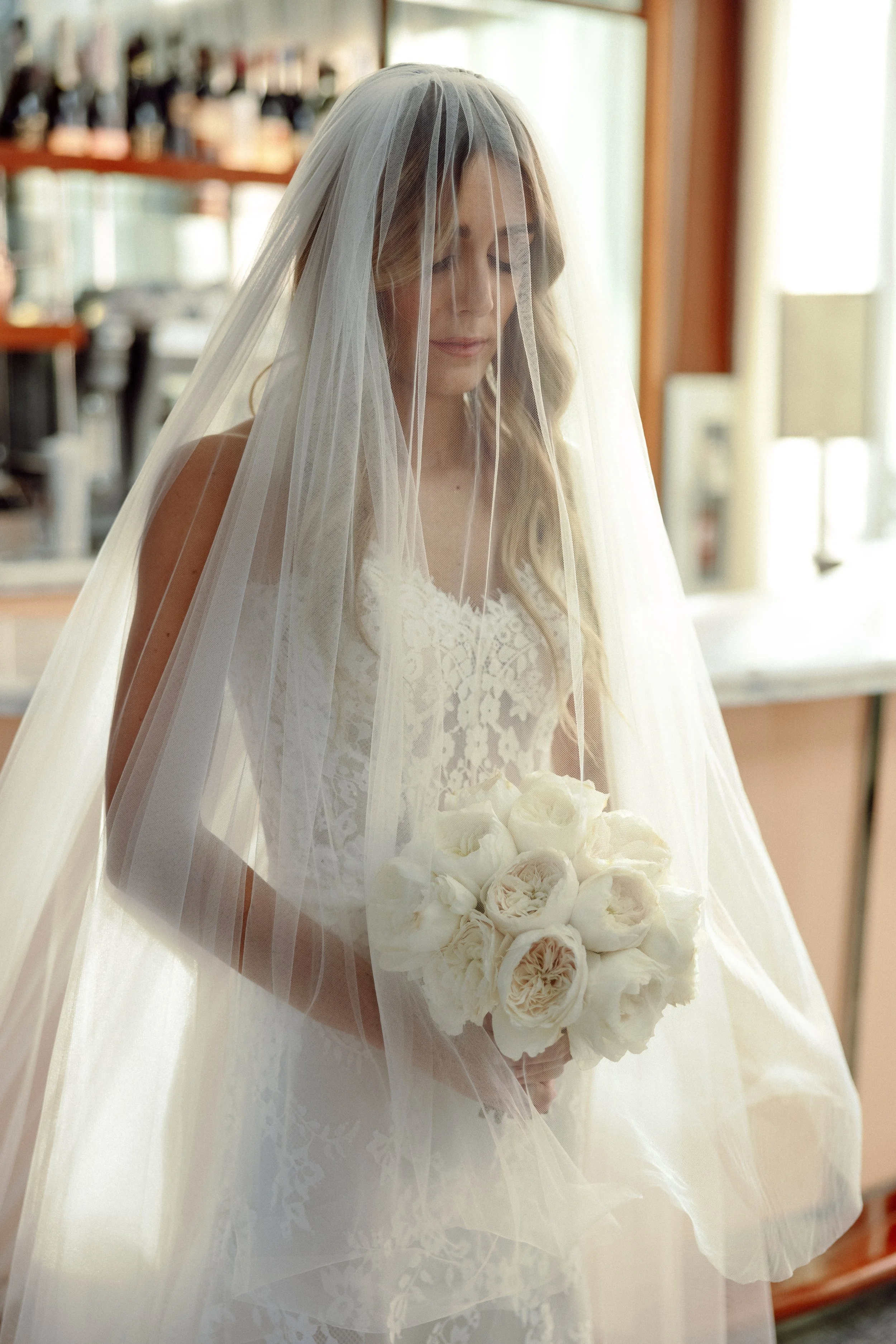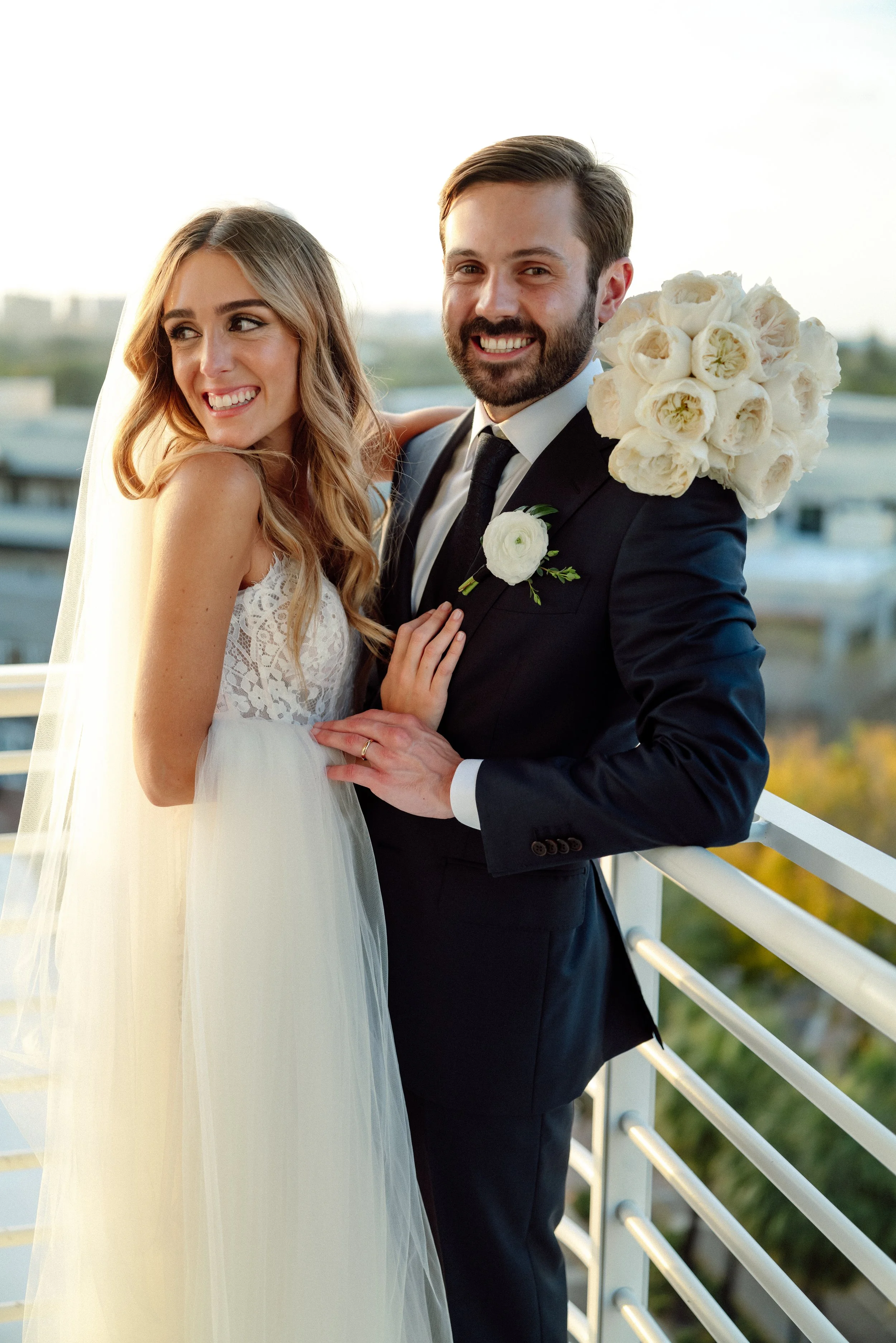 A joyous bride with a romantic sense of style. A perfect intimate wedding at Mr. C's in Coconut Grove.