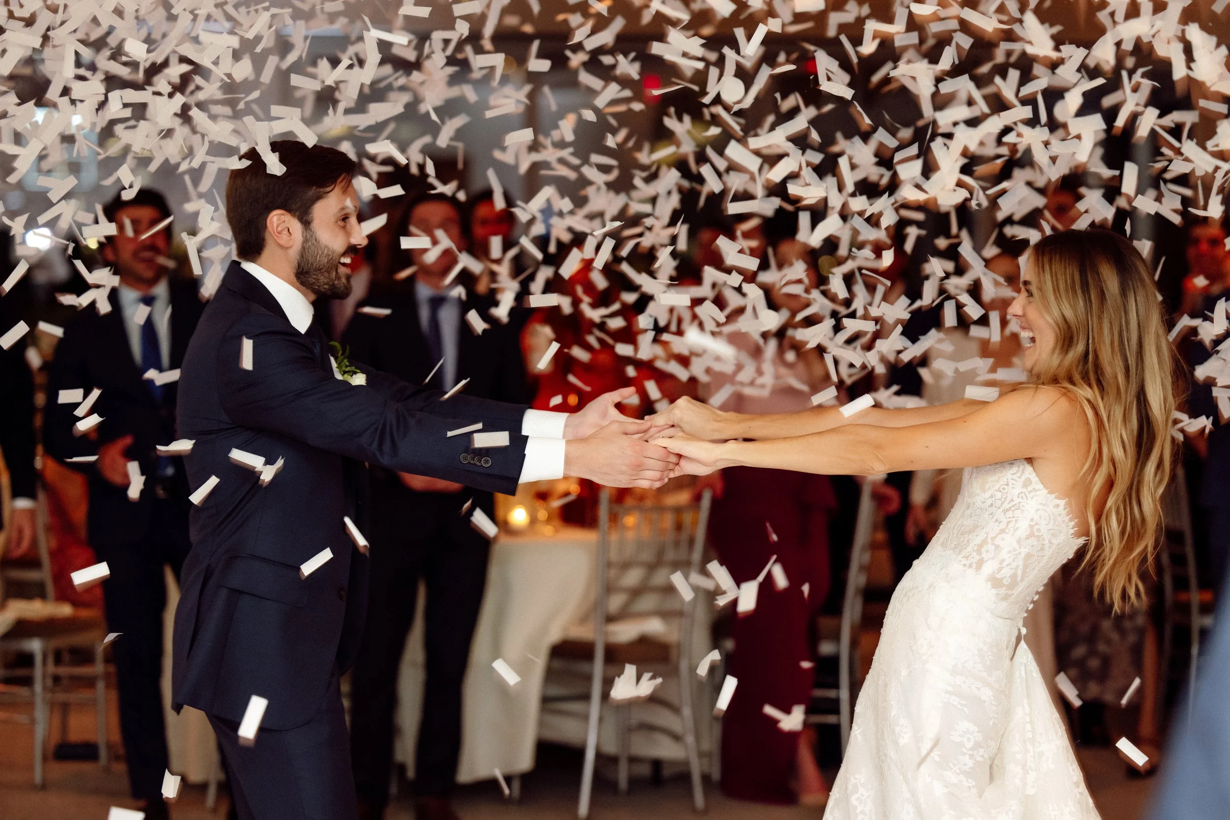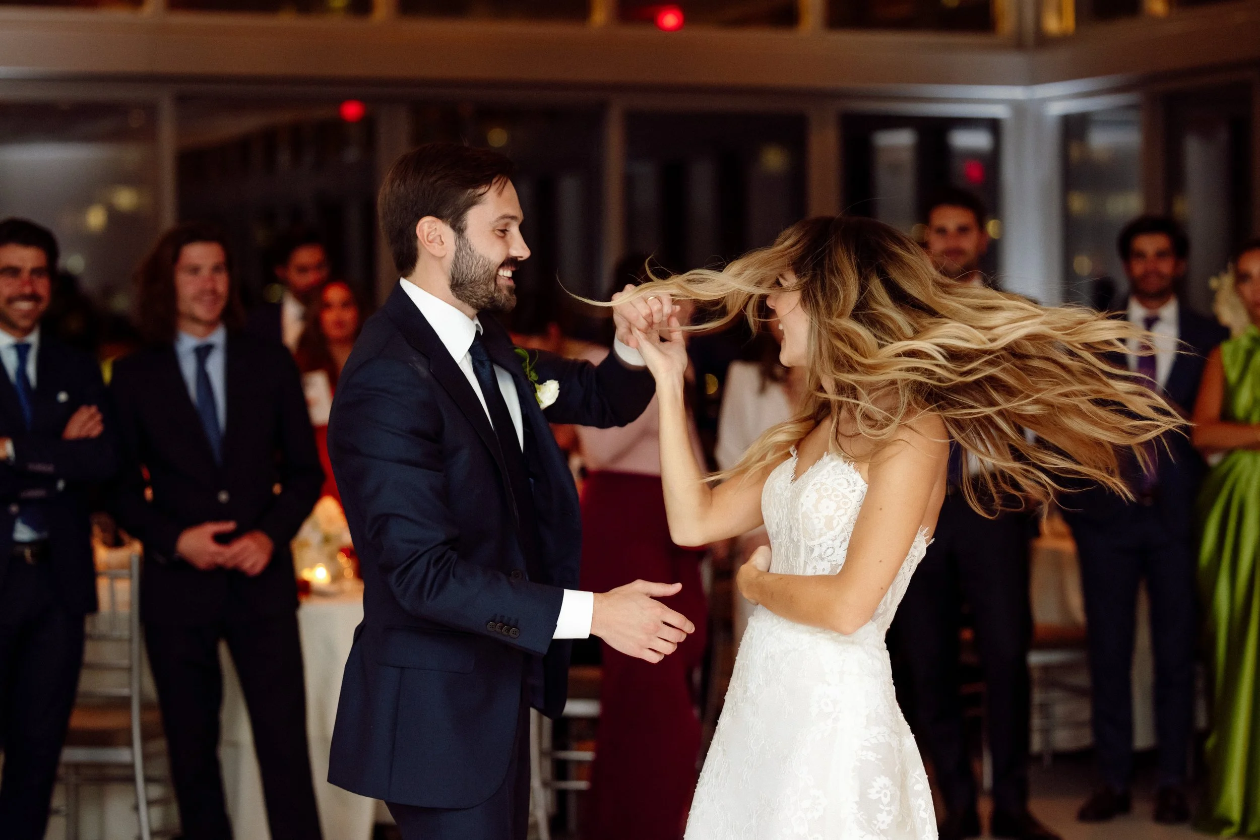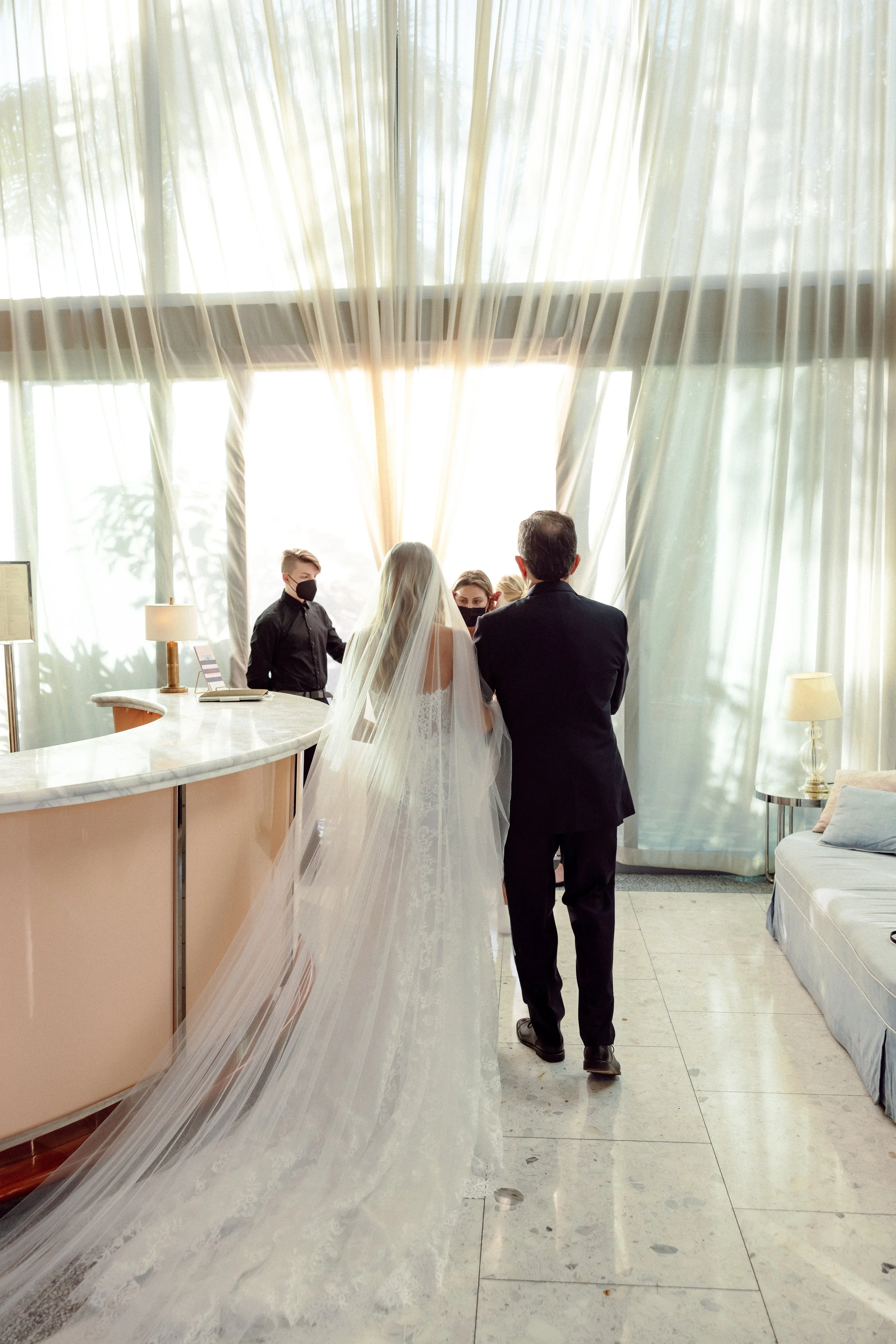 A joyous bride with a romantic sense of style. A perfect intimate wedding at Mr. C's in Coconut Grove.